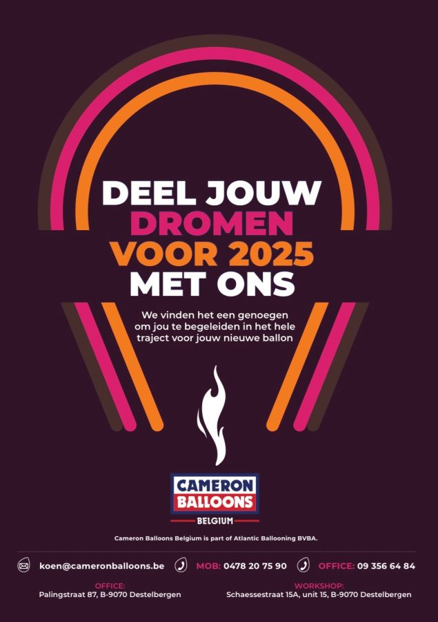 We wensen al onze klanten, hun crewleden, alle ballonenthousiastelingen en ballonspotters een vredige overgang naar het Nieuwe Jaar, en een prachtig 2025 met veel zon, rustige wind en massa’s onvergetelijke ballonmomenten!