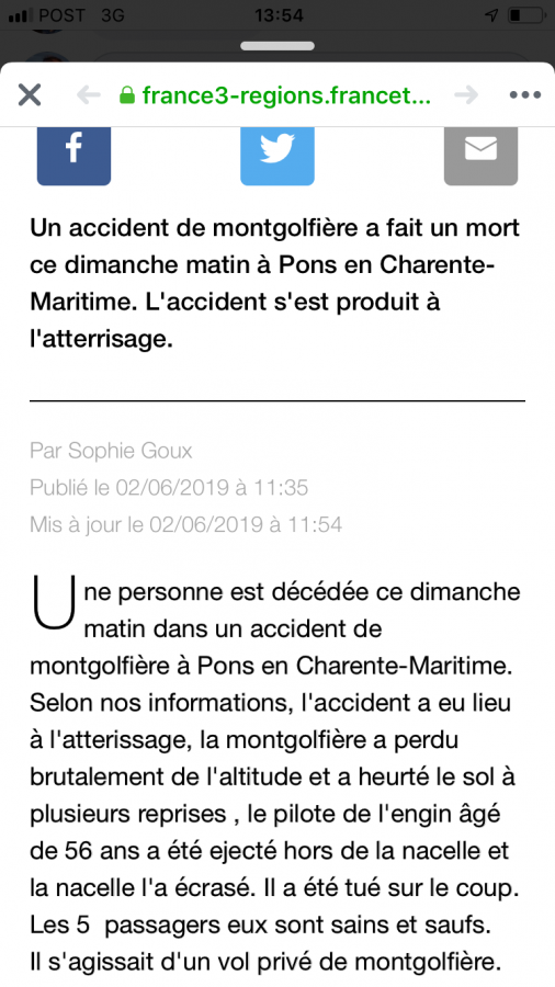 Gisterenochtend, zondag 2 juni, kwam in Frankrijk een ervaren 56-jarige piloot om het leven, toen hij bij de landing uit zijn mand gevallen was, en de mand over zich heen kreeg. Er zijn nog geen verdere details, en onderzoek door de Franse autoriteiten zal hier wel duidelijkheid over brengen, maar we mogen wel al met enige voorzichtigheid veronderstellen dat deze tragedie misschien te vermijden was.