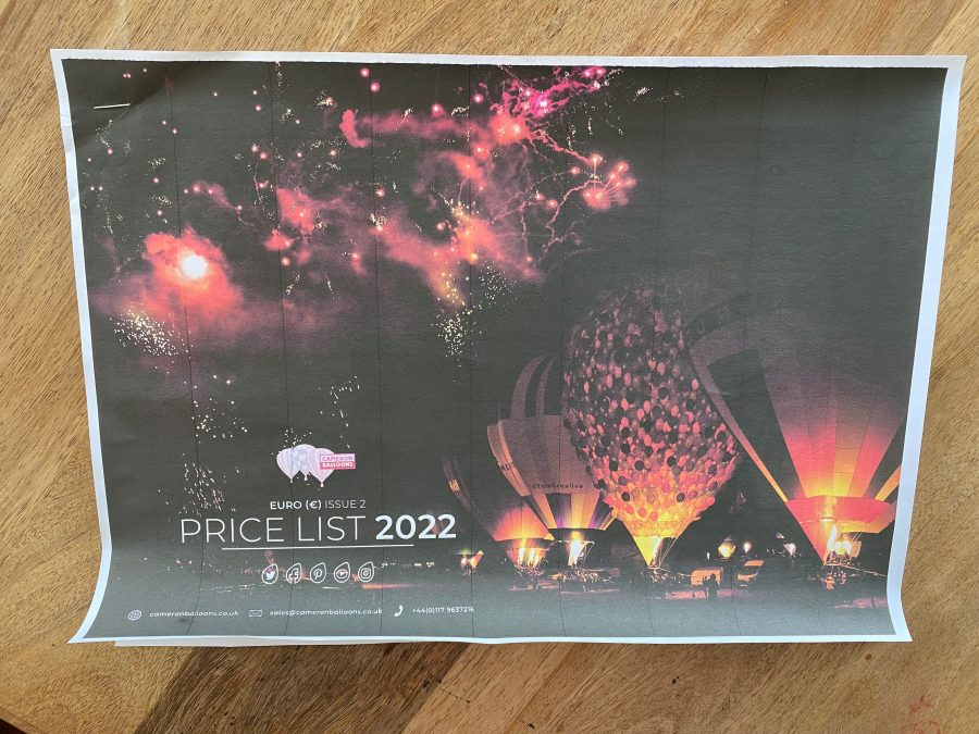 Vanaf nu is de nieuwe prijslijst van Cameron Balloons beschikbaar. Een eenvoudig mailtje naar koen@cameronballoons.be volstaat. Iets later vind je de prijslijst in je mailbox.