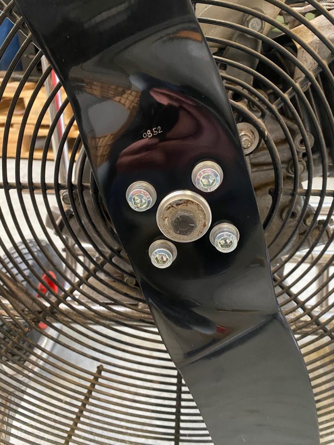 Door als piloot of teamlid vaak zelf de propeller en het frame van je ventilator na te kijken, voorkom je erger. Bij deze ventilator was de oude houten schroef aan het splijten, en het was een kwestie van tijd voor die zou versplinteren. Wanneer dat gebeurt, vormt dit een belangrijk veiligheidsrisico voor omstaanders, en dan is vaak ook het rooster erdoor vernield. Dus om erger te voorkomen kan je best regelmatig de ventilator nakijken, en ingrijpen voor een probleem groter wordt. Vandaag vervingen we op deze ventilator het gespleten houten blad door een volledig nieuw carbonfiber blad, opnieuw goed voor veel zorgeloze ballonvaarten.